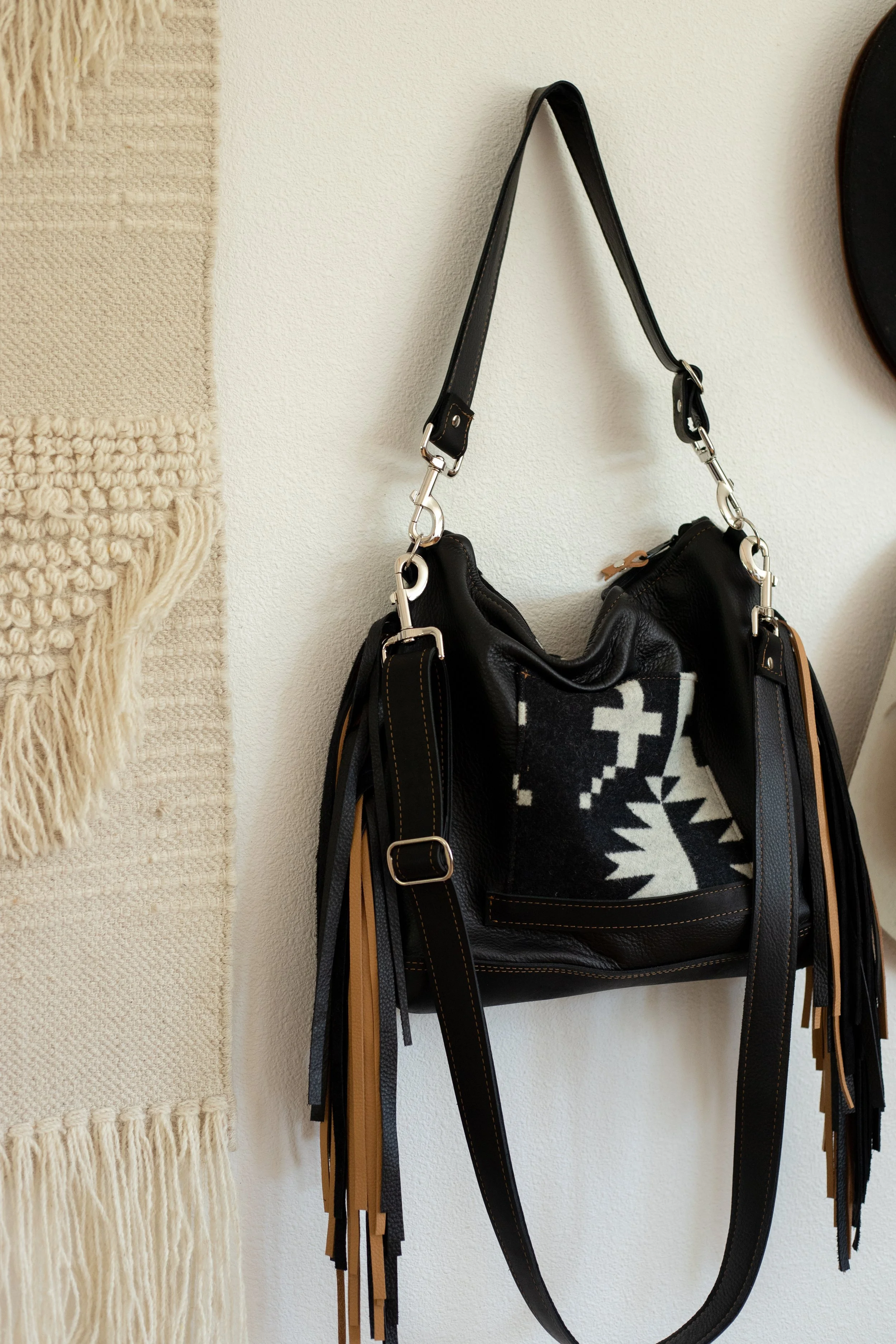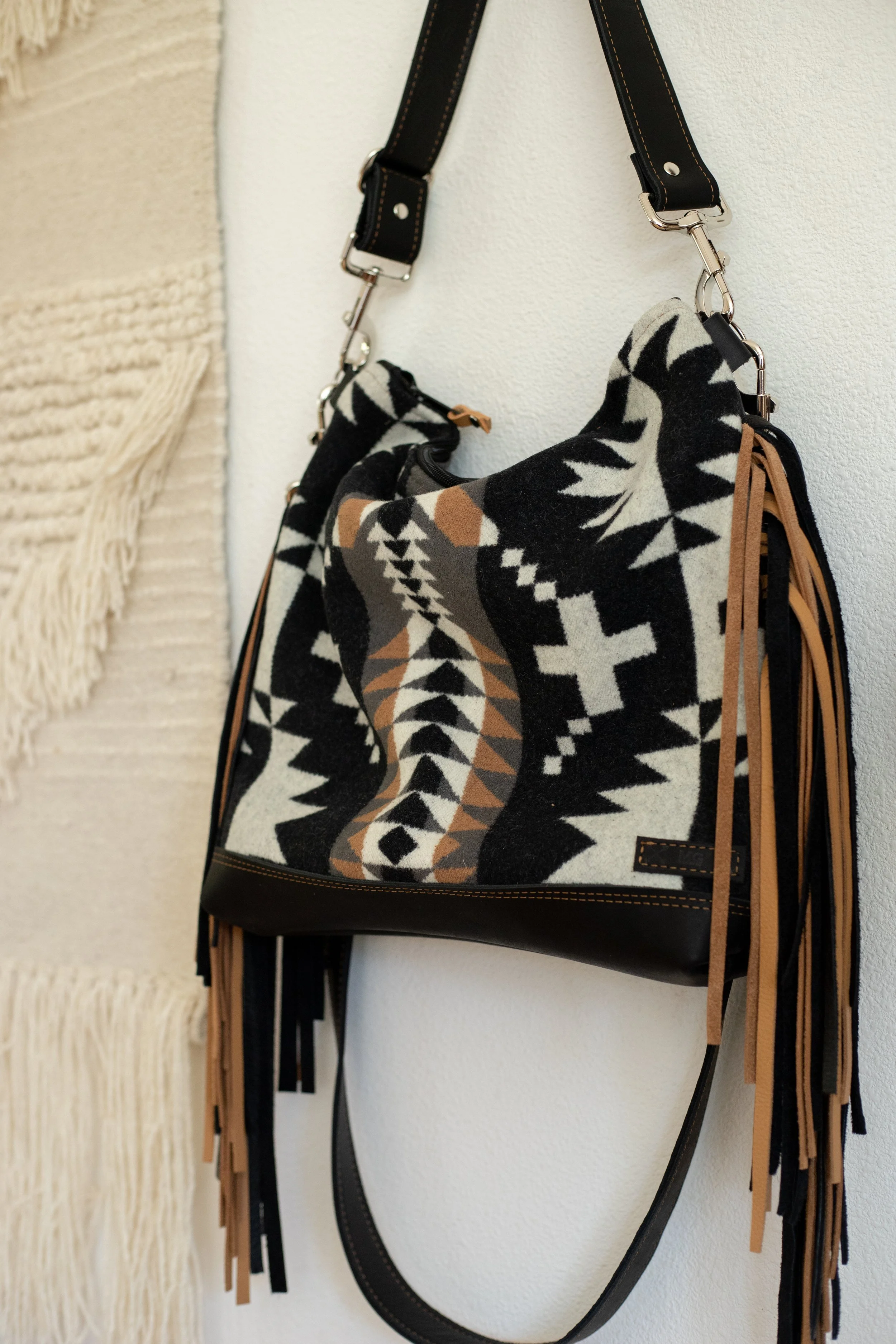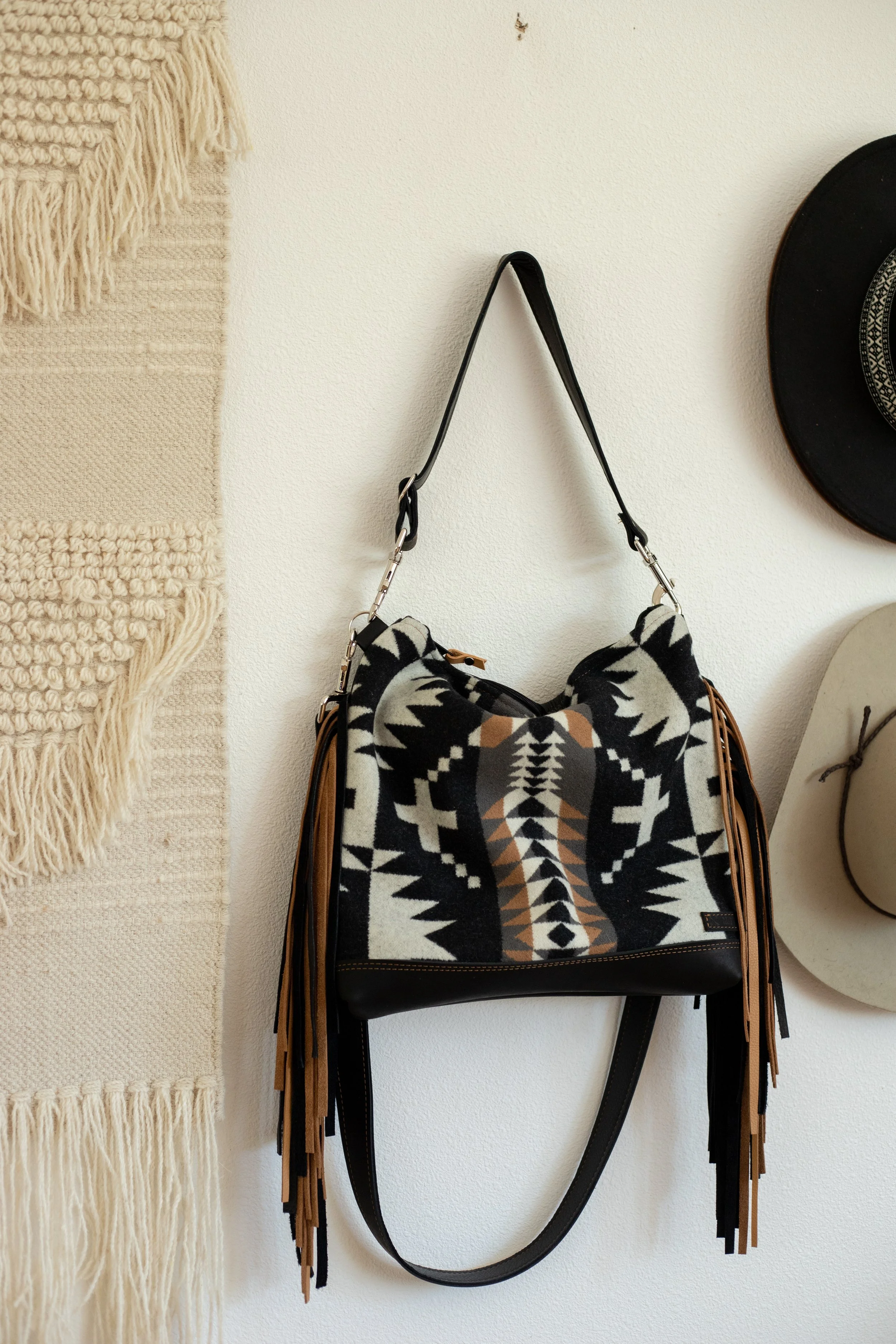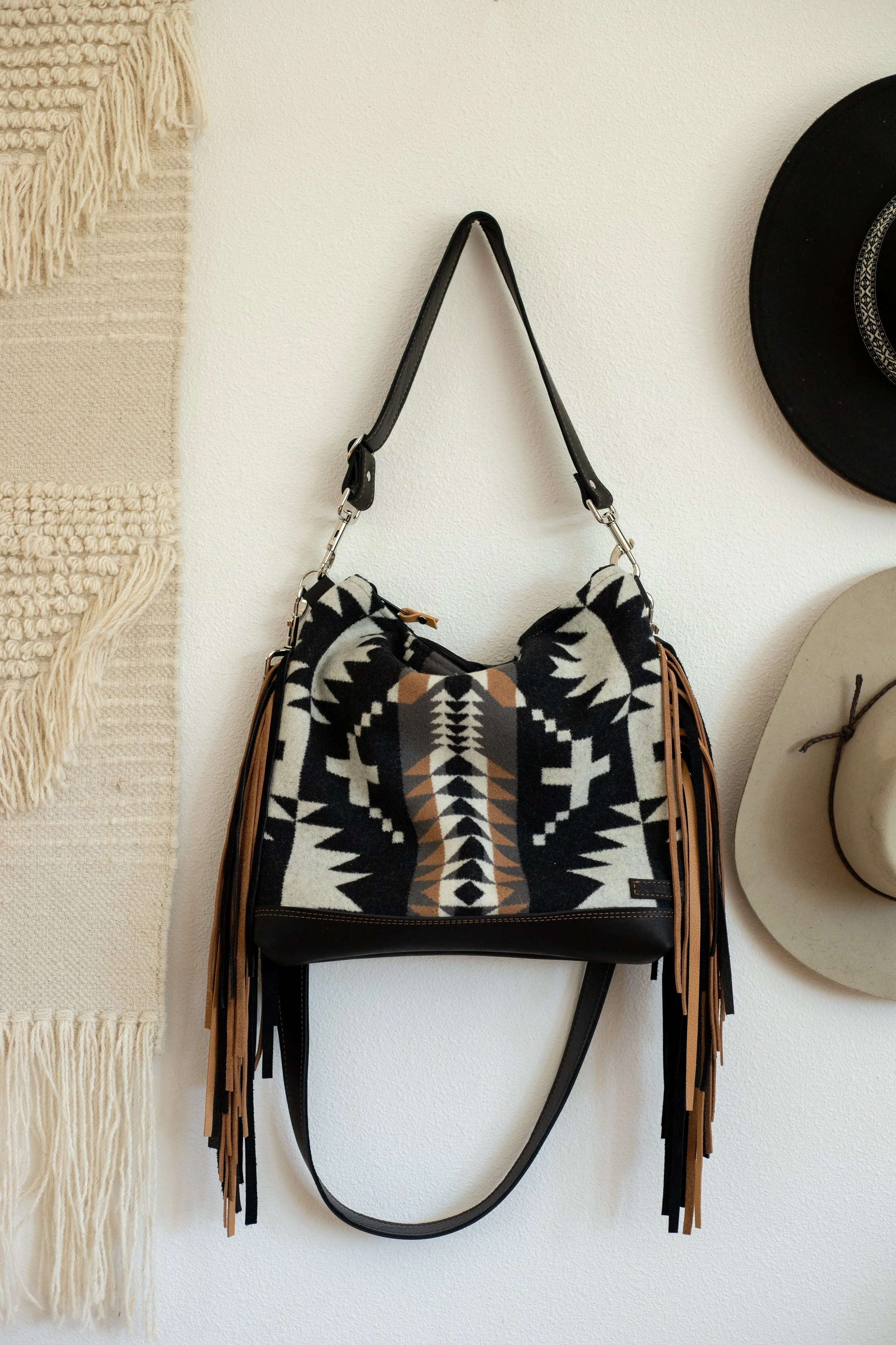 AVAILABLE - XL Slouchy Crossbody in Spyder Rock Pendleton Wool with Black Leather