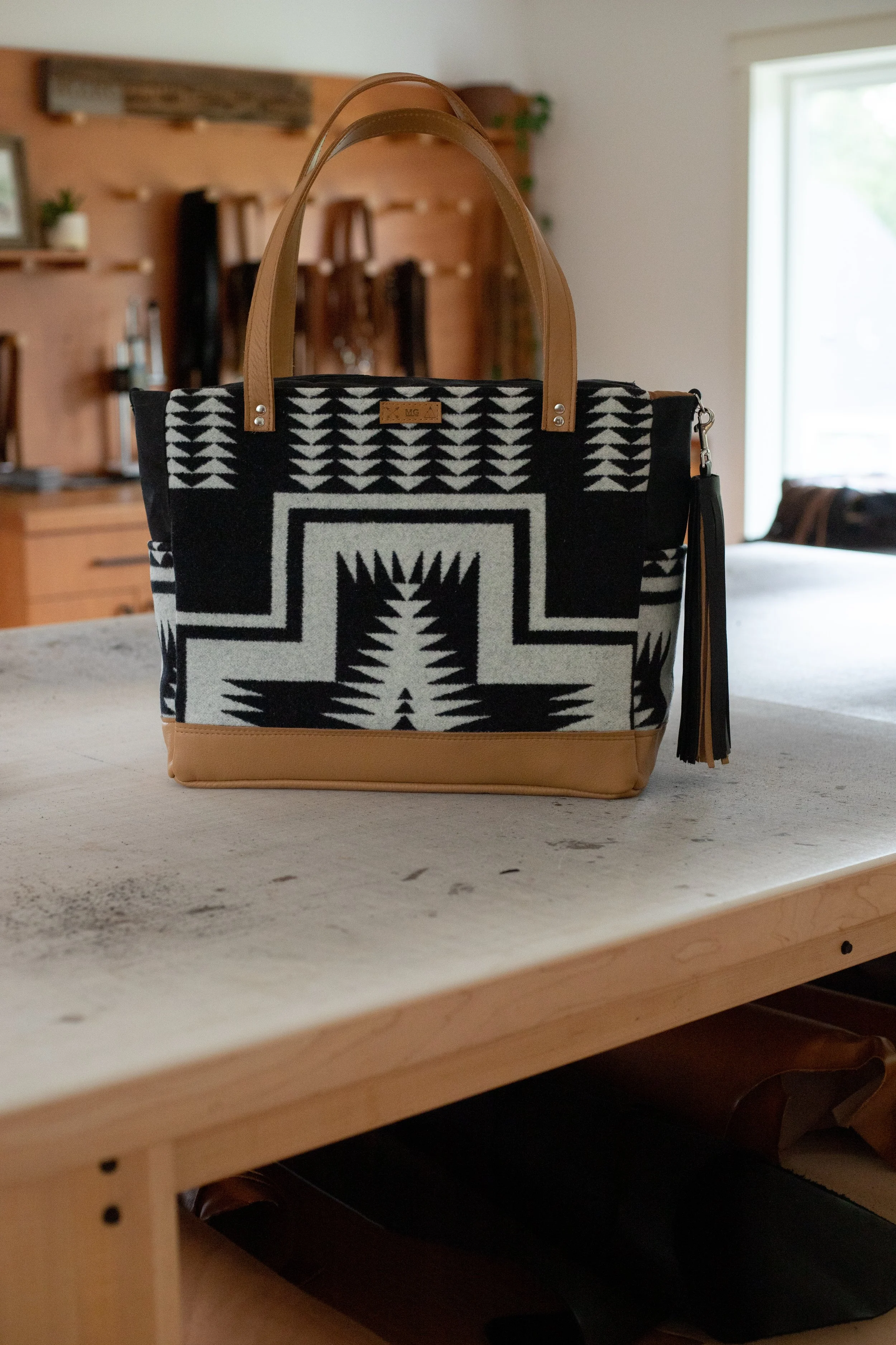 Custom Reserved Bag - Emily - Everyday Fringe Tote in Oxford Harding Pendleton + Black Leather (Copy)