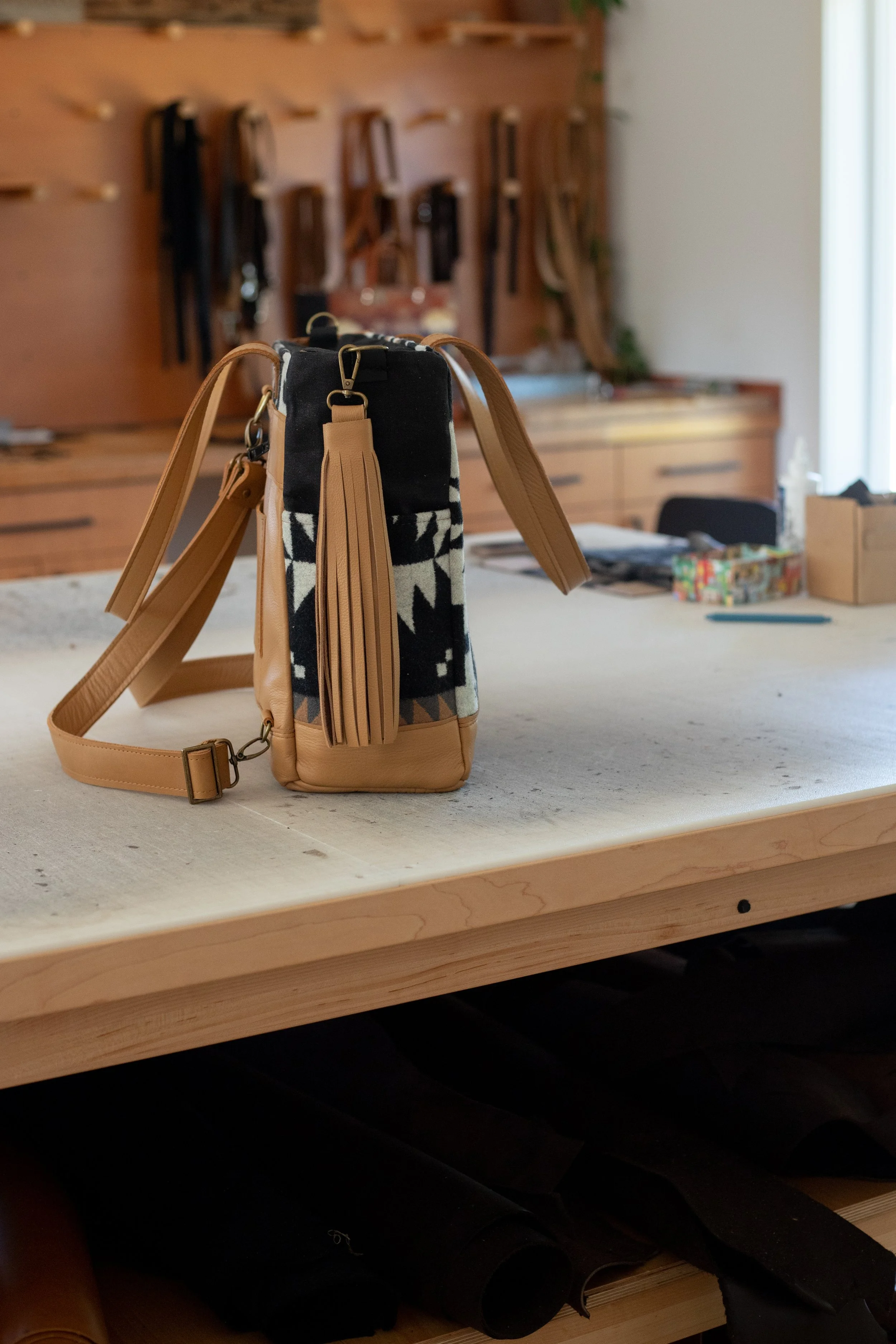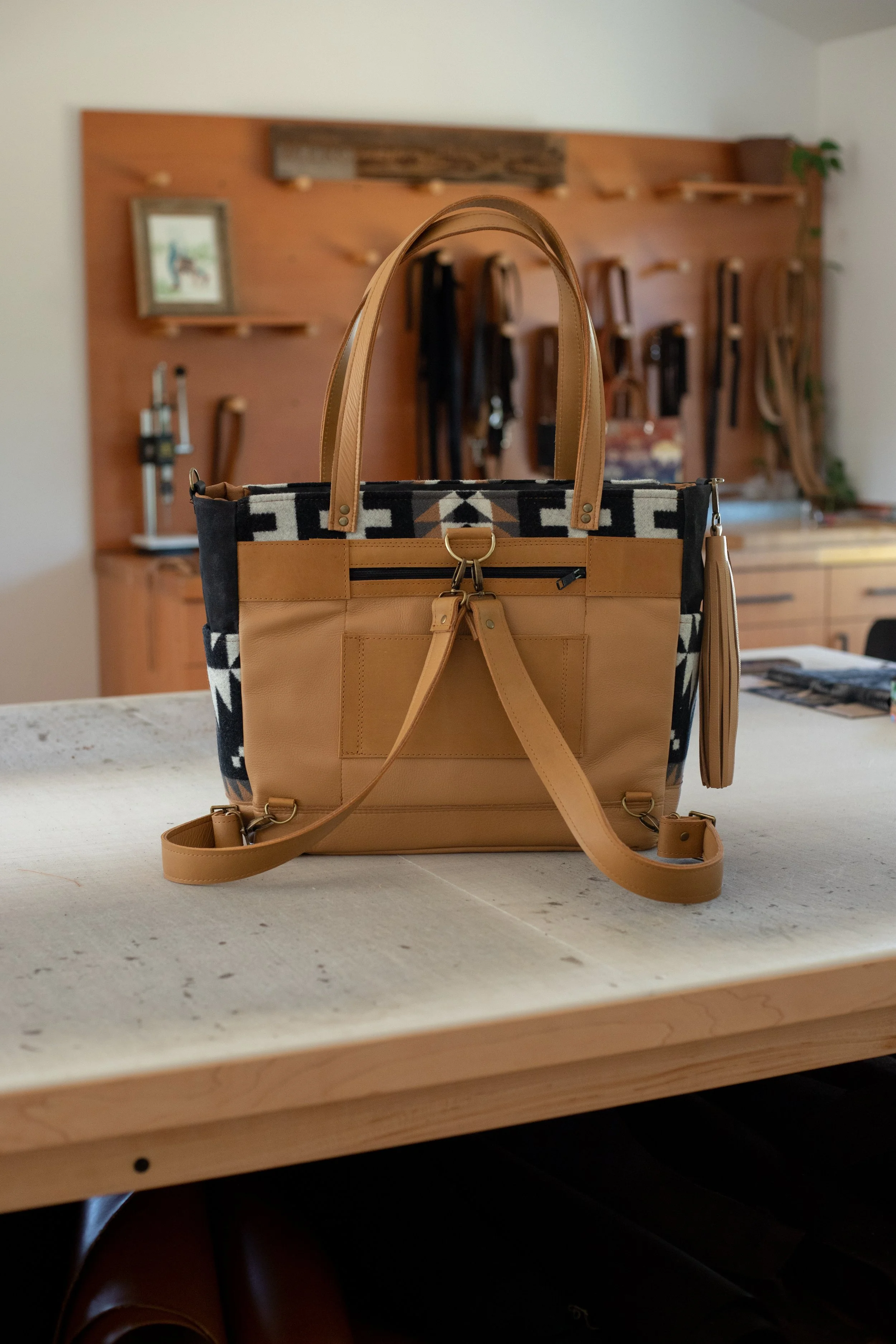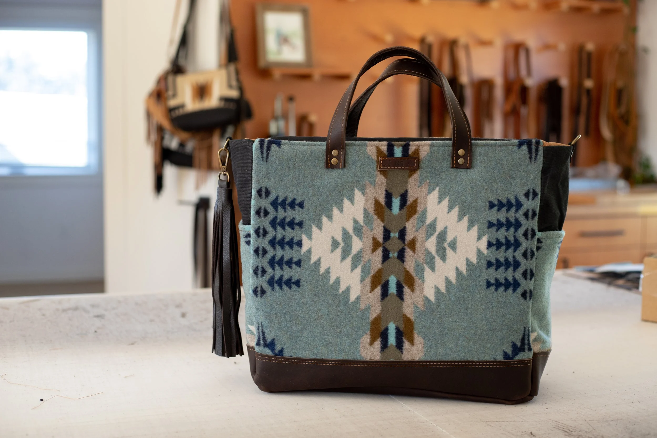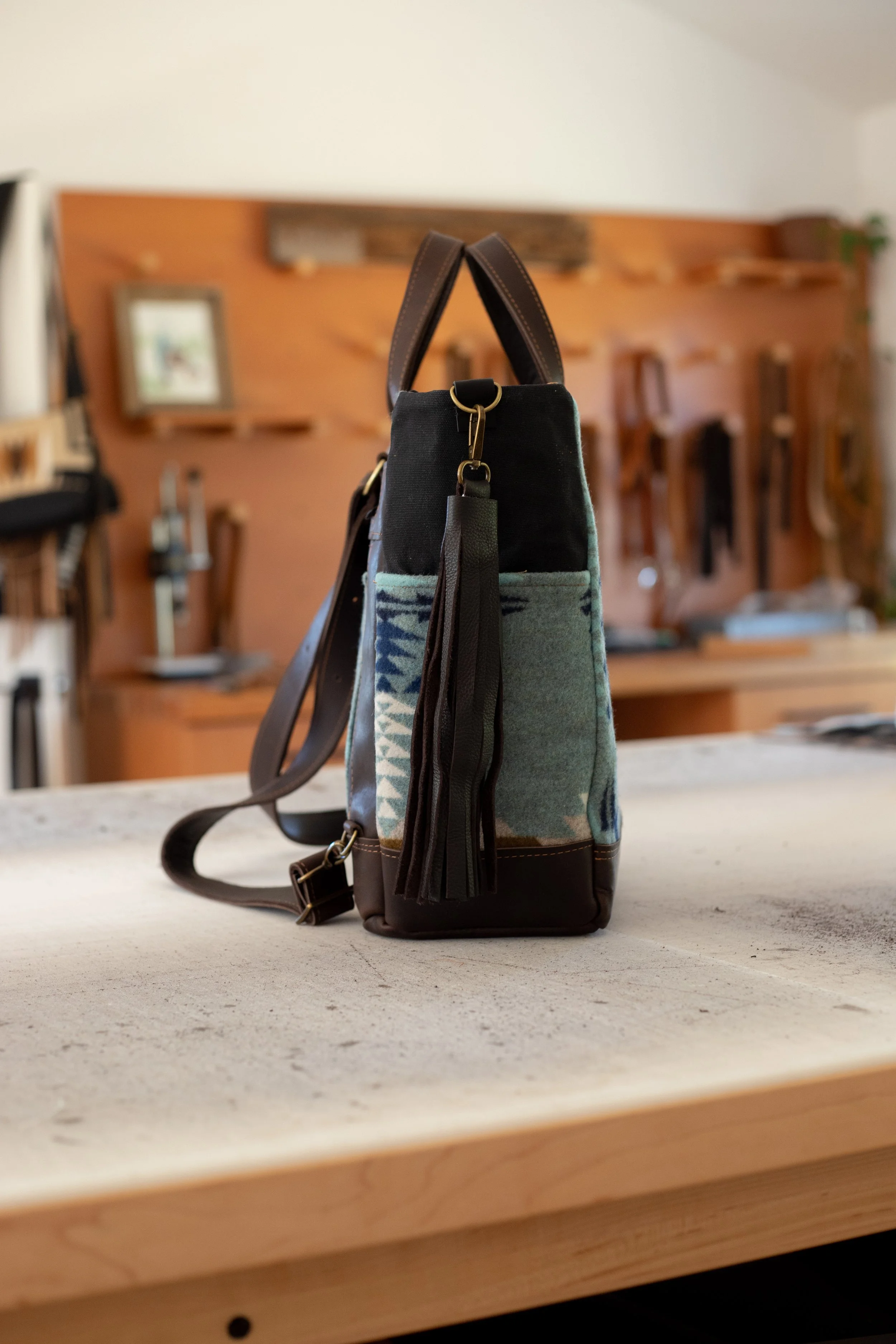Reserved Bag - Computer Tote in Walking Rock Pendleton Wool + Black Leather